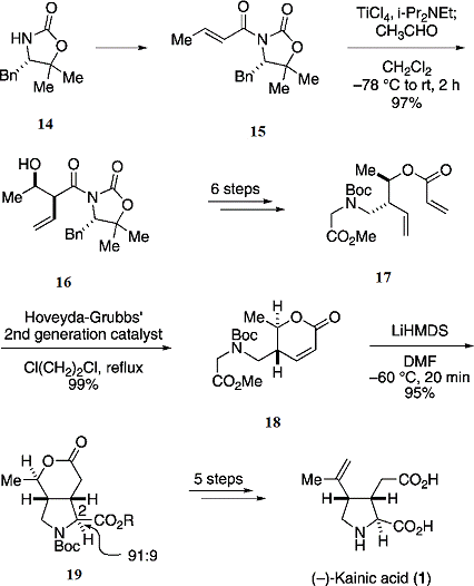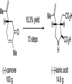 Этот синтетический путь позволил получить 14,6 г (-)-каиновой кислоты(1) из 100