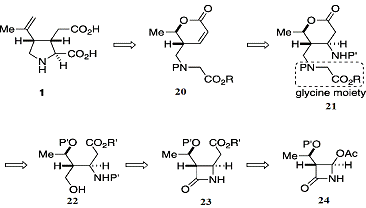 Схема 4: полный синтез (-)-каиновой кислоты(1)