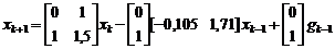 Пример 2. Предположим объект управления тот же, что и в предыдущем примере, т.е. описывается уравнениями (13). Найти одно из возможных дискретных модальных управлений с запаздыванием на такт, при котором обеспечивается устойчивость замкнутой системы.