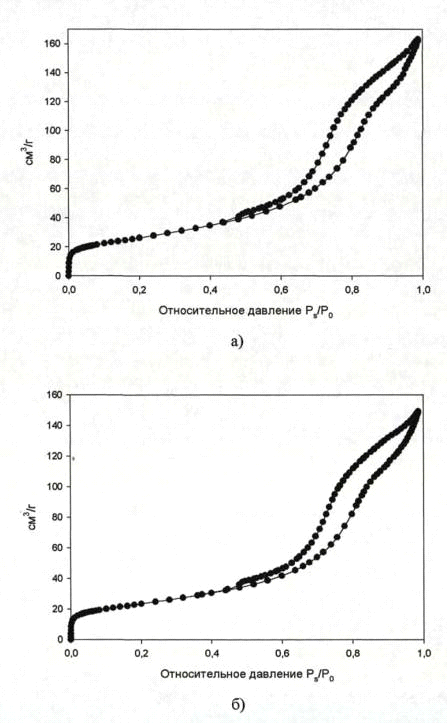 Изотермы адсорбции-десорбции для образцов ПСХ-3 (а) и АХ (б)
