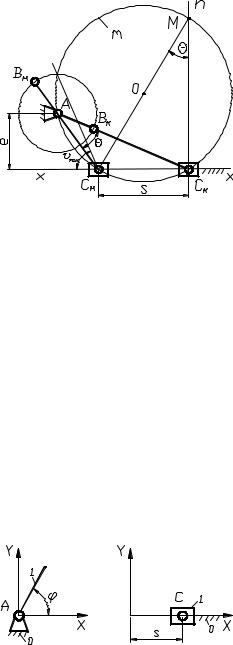 ходу будет меньше чем на холостом. Направление вращения кривошипа следует выбирать так, чтобы из начального положения он двигался в сторону угла рабочего хода. Отношение фазовых углов называется коэффициентом изменения средней скорости выходного звена: