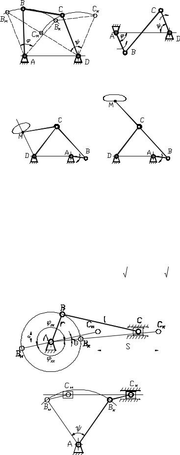Шарнирные четырёхзвенники часто используют для воспроизведения определённых траекторий движения (рис. 4). Форма траектории точки М шатуна (шатунная кривая) зависит от размеров звеньев механизма и координат точки М. Путём