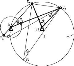 положения коромысла. По формуле (2) определяется угол смещения θ . Проводится окружность m, которая является геометрическим местом вершин угла q = ÐСн ACк = ÐСн NCк , опирающегося на хорду CнCк.