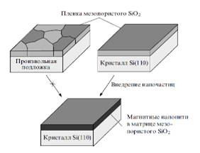 Особый интерес представляет синтез одномерных наночастиц с использованием пленок мезопористого диоксида кремния, в частности магнитных нанокомпозитов для изготовления запоминающих устройств со сверхвысокой плотностью записи информации.