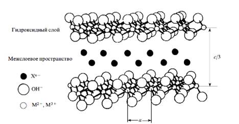 положительно заряженными гидроксидными слоями и межслоевыми анионами, несущими