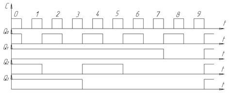 2 Временная диаграмма последовательного суммирующего счетчика