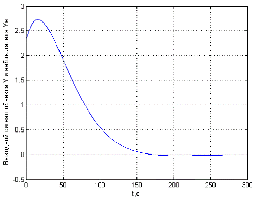 Рисунок 5.2- Изменение выходного сигнала объекта и наблюдателя