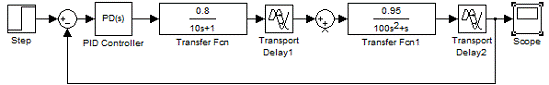 % задание передаточной функции первой части объекта:=tf([0.8],[10 1],'ioDelay',1);