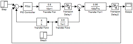 Рисунок 6.5 - Модель, содержащая два непрерывных объекта, регулятор,