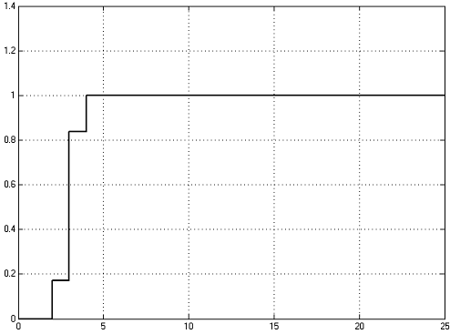 Как видно из рисунка, график переходной характеристики имеет дискретный вид и постепенно выходит в единицу.