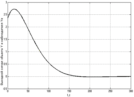 Рисунок 6.14- Изменение выходного сигнала объекта и наблюдателя