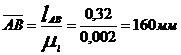 = 0,1 м - истинный размер звена ОА