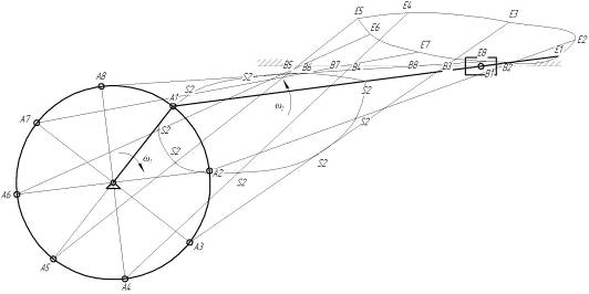 Рисунок 2 - Схема восьми положений кривошипно-ползунного механизма