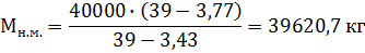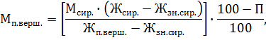 де Мм. - маса молока, яка використовується для сиру, кг; Жверш. - масова частка жиру в вершках, % (Жверш.=39 %); Жм. - масова частка жиру прийнятого молока, %(Жм.=3,77 %); Жн.м. - масова частка жиру нормалізованого молока, %.