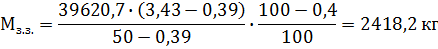 де Жсир. - масова частка жиру в сивортці, % (для сиру „Російський” Жсир.=0,39 %); Жз.з. - масова частка жиру зрілого зерна, % (Жз.з.=50 %);Пдоп. - допустимі витрати жиру при виробництві та дозріванні сиру в залежності від його виду,% (П=0,4 %).