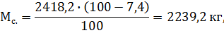 де Ну. - норма усушки сиру в період дозрівання, % (Ну.=7,4 %).