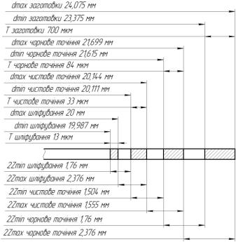допуск на розмір кожного переходу. Найбільші граничні розміри розраховуємо