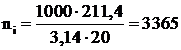 Розрахункове значення частоти обертання шпинделя, яке допускається стійкістю різця: