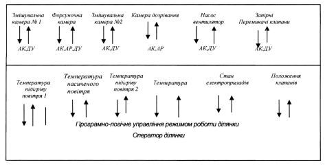 Згідно схеми, автоматизоване управління технологічним процесом ділянки, здійснюється з пункту управління, де розміщено щит управління і постійно знаходиться оператор-технолог (робітник).