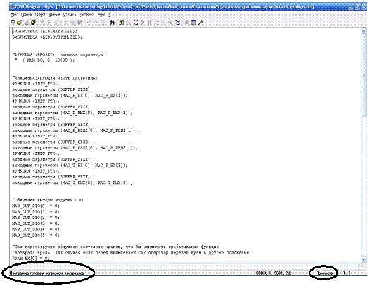 системы разработки прикладного программного обеспечения CONT-Designer for Windows» появляется сообщение «Программа готова к загрузке в