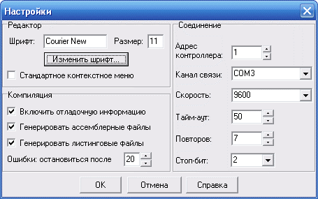 Рисунок 58 - Окно настроек соединения с контроллером CPU-17B