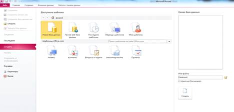 В Access база данных обозначает файл, содержащий набор информации. База данных в Access может содержать следующие типы объектов: таблица, запрос, форма, отчёт, страница, макрос, модуль.