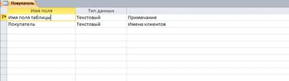 Далее необходимо в конструкторе указать «Имя поля» таблицы,