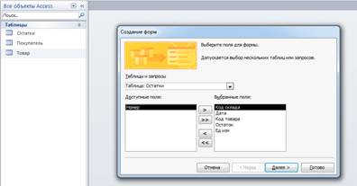 «Создание», затем в меню «Формы» нажать кнопку «мастер форм» выбрать