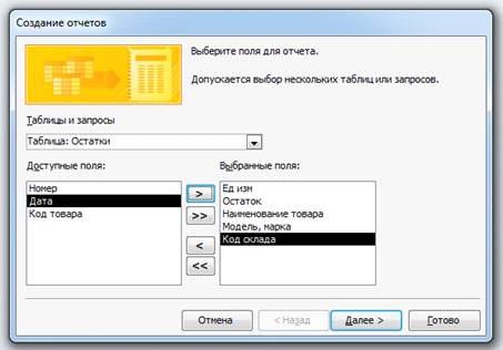 Отчёт объект, предназначенный для создания документа, который впоследствии может быть распечатан либо включён в документ другого приложения. Этот документ содержит результаты выборки из базы данных в виде структурированной информации (например в виде таблицы или списка). MS Access обладает богатыми возможностями по оформлению и форматированию отчетов. Те же два режима создания есть и у отчета. В режиме мастера у пользователя имеется возможность задать множество параметров, практически полностью определяющих желаемый внешний вид отчета. Для создания нестандартных отчетов лучше пользоваться конструктором.