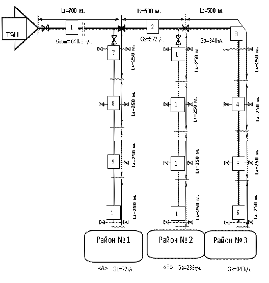 количество теплоты, потребляемое районом, Вт (см.табл.1 выше);