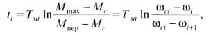 где нач i и ci - начальные и конечные значения скорости вращения двигателя на каждой ступени.