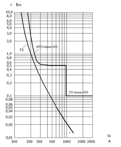 Выбираем время срабатывания защиты линии по условиям согласования по току и времени с защитными устройствами предыдущих элементов. Предыдущим расчётным элементом является наиболее мощный из трансформаторов ответвлений - трансформатор мощностью 250 кВ·А. Его защита выполнена (таблица 9.1) с помощью плавкого предохранителя типа ПКТ-10 на номинальный ток 31,5 А.