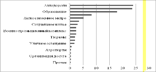 Рис. 6. Рейтинг отраслей, в которых используются ГЧП в мире,