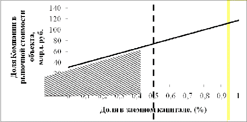 Пусть доля Компании в выплате долга составляет 50%, т.е.