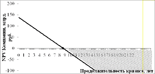 Рисунок 13 демонстрирует влияние продолжительности кризисных явлений на NPVКомпании, где выделенная зона