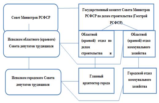 Определяющим, основным началом в управлении городскими землями являлась планировка населенных мест, в соответствие с которой осуществляются отвод, изъятие, учет и регистрация городских земель. Общее управление осуществлялось вышестоящими исполкомами местных Советов по отношению к городским исполкомам, а также Советами Министров союзных республик через их соответствующие органы. На Совет Министров Союза ССР возложено утверждение генеральных планом городов Москвы и Ленинграда.