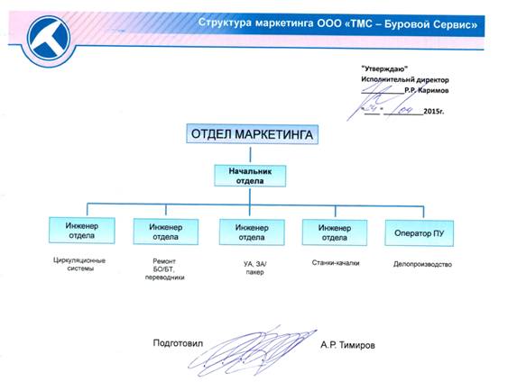 .1 Характеристика оргструктуры отдела маркетинга ООО «ТМС - Буровой Сервис»