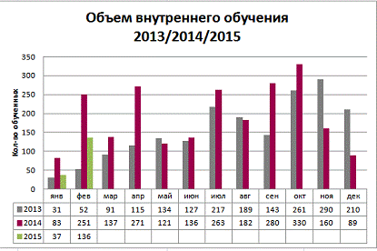Рисунок 4 - Объем внутреннего обучения за 2013-2015 гг. [54]