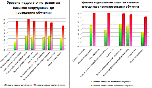 Таблица 3.3 - Недостаточно развитые навыки сотрудников после проведения обучения