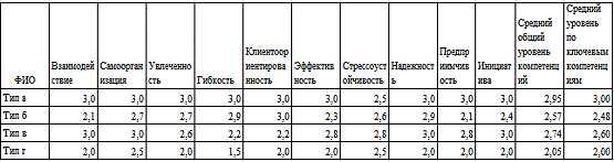 «а» данные компетенции развиты на высшем уровне, у продавцов типа «г»