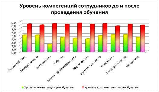 Рисунок 3.2 - Уровень компетенций сотрудников до и после проведения обучения Приложение 4Оценка компетенцийТаблица 4.1 - Шкала оценки компетенций: