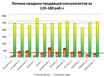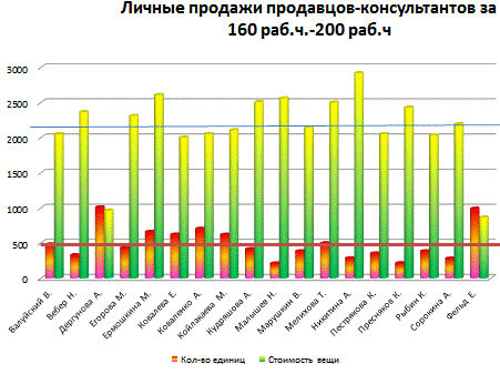 Рисунок 5.1 - Личные продажи продавцов-консультантов ТЗ 1
