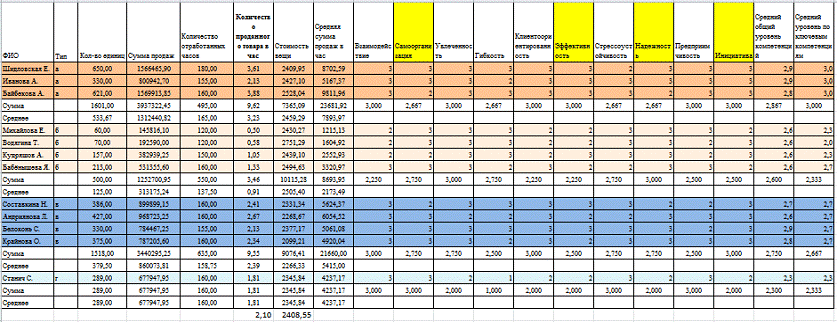 тренинга, обстановки на тренинге и т.д. Затем оценки сотрудников переводятся в