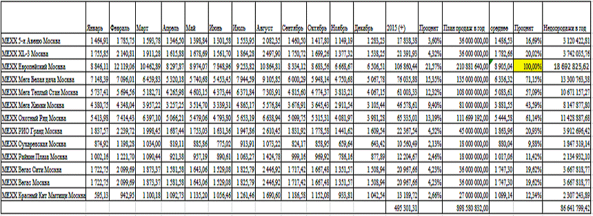 5]. Тогда средняя сумма недопродаж по всем торговым залам в год: 86 641 799,42