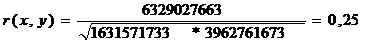 Расчет линейного коэффициента корреляции между показателем x и показателем y |