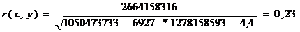 коэффициент корреляции рассчитывается по формуле: