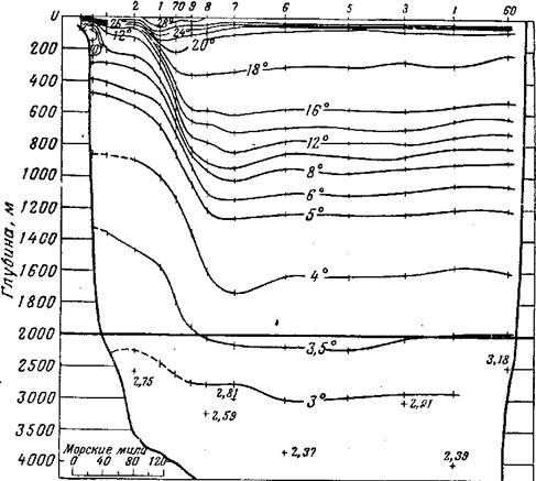 февраля. Под течением на глубине 400 м. температура +8°С . Средняя температура