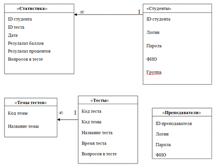 АИС «Система тестирования» представлена на (рисунке 4). Все связи имеют вид