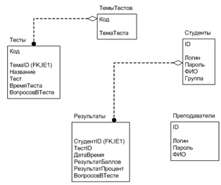 В проектируемой базе данных сущностями будут являться: ПРЕПОДАВАТЕЛИ, СТУДЕНТЫ, ТЕМЫ ТЕСТОВ, ТЕСТЫ, СТАТИСТИКА.