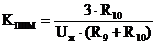 Широтно-імпульсний модулятор виконано на компараторі DA3 типу 521СА3(554СА3). За своїми параметрами даний компаратор підходить для роботи в схемі ІППН на частотах до 100 кГц. Обмежувальний подільник утворено двома резисторами R9 и R10. Струм подільника вибирається з наступних умов:
